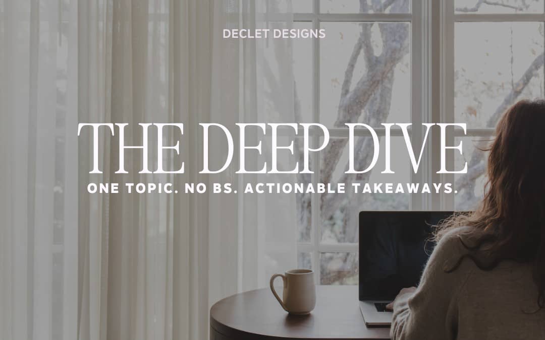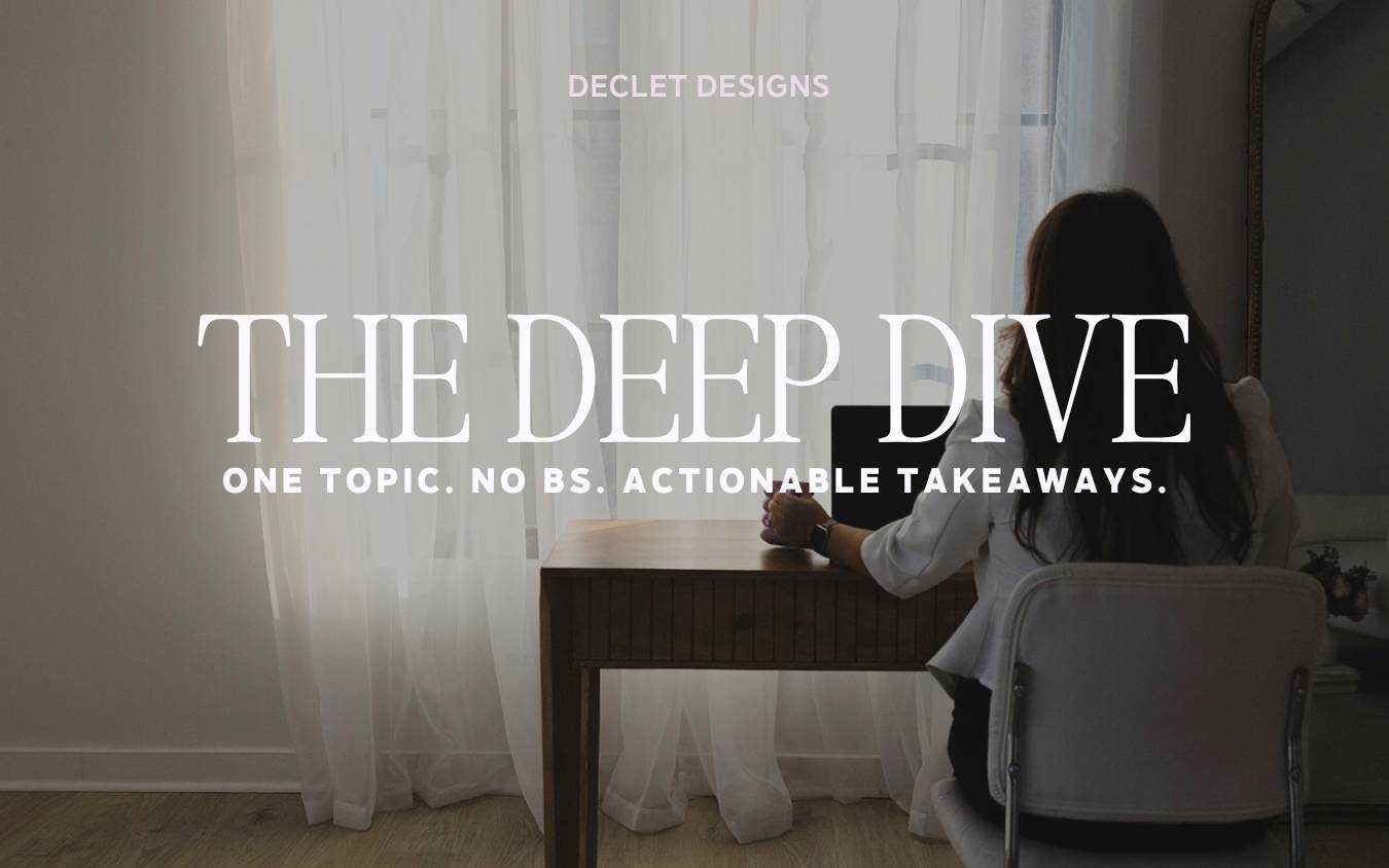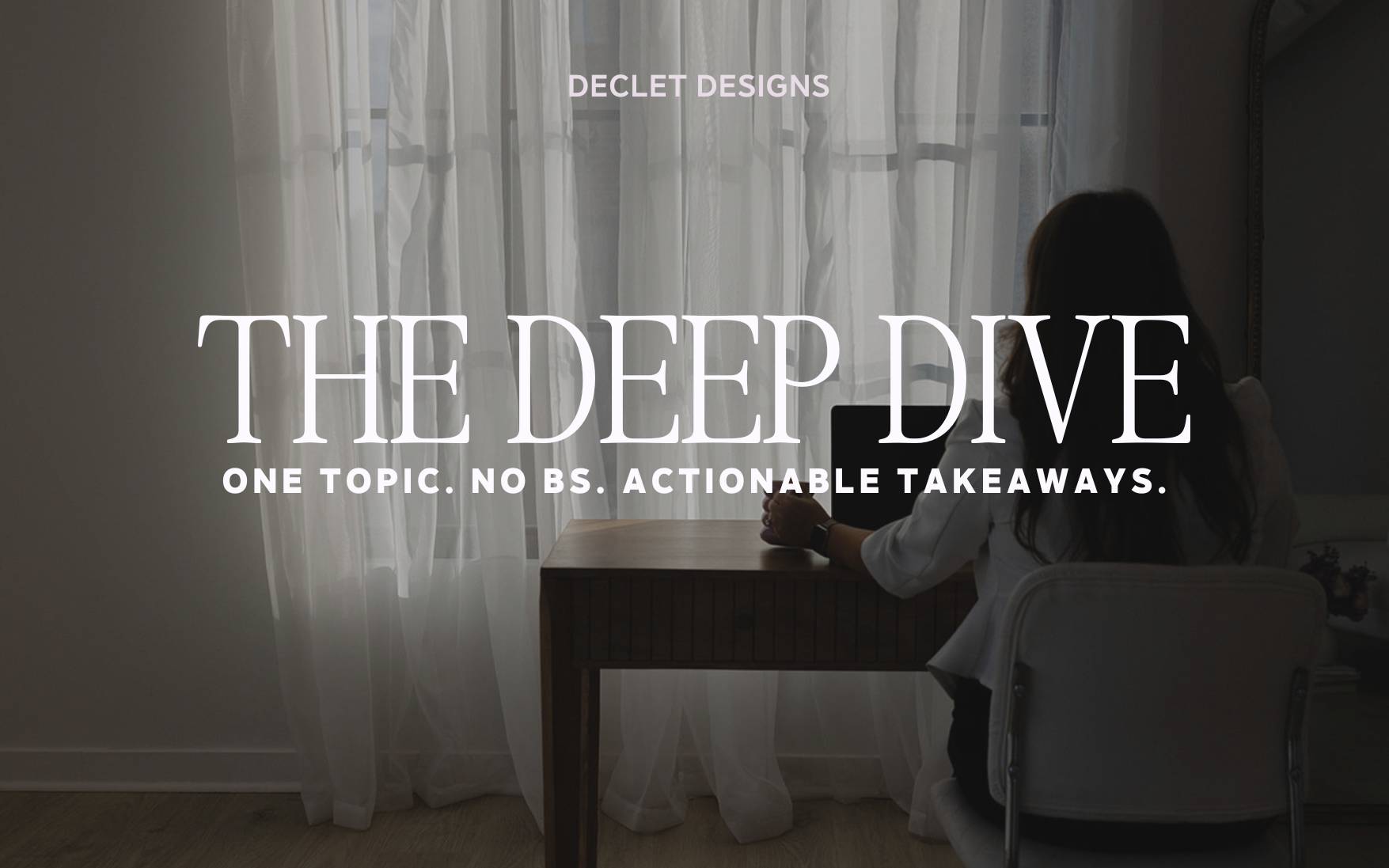 Welcome to Issue #1 of the Deep Dive with Declet Designs For what seems like forever, I’ve been sending you Tuesday tips. Short, quick notes you can scan in under a minute. They’re fun and I love sending them (and not planning to stop!), but I also believe that the things that actually move the needle in your business don’t always fit in a soundbite. I kept finding myself on client calls saying, “I wish I could walk you through the bigger picture here,” or during workshops watching heads nod...
